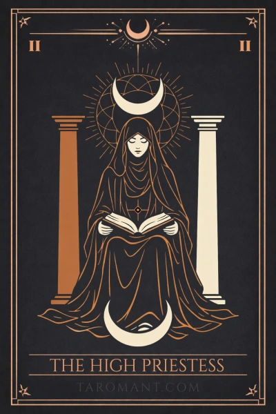 Интуиция подсказывает сделать шаг в неизвестность, но без подготовки это может обернуться наивной ошибкой. Жрица говорит: сначала прислушайся к себе, потом прыгай. Хорошее сочетание для тех, кто стоит на пороге нового пути и чувствует внутренний зов — стоит доверять этому чувству.